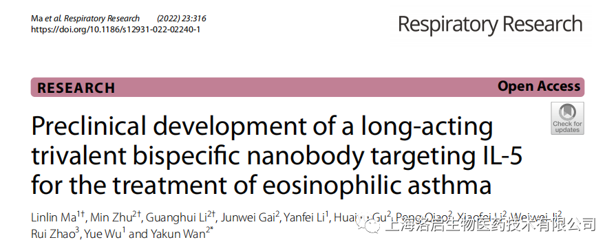 科研力量 I 深圳商务生物长效IL-5纳米抗体研究成果于《Respiratory Research》发表!