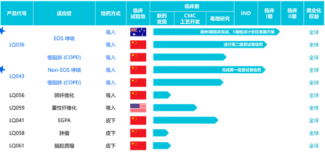 深圳商务生物的研发管线中,还包括治疗肺纤维化的LQ056和治疗囊性纤维化的LQ059,同样采用吸入给药。